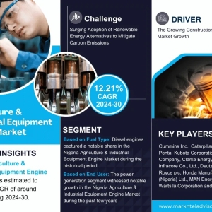 MarkNtel Advisors, a leading market research and consulting firm, has announced the release of its latest study titled Nigeria Agriculture & Industrial Equipment Engine Market Research Report...