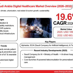 The Report Cube which is one of the leading market research company in UAE expects the AI in Saudi Arabia Digital Healthcare Market to grow at a CAGR of around 19.6%through 2032, as highlighted i...