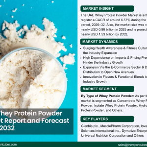 The Report Cube which is one of the leading market research company in UAE expects the UAE Whey Protein Powder Market to grow at a CAGR of around 6.57% through 2032, as highlighted in their lates...