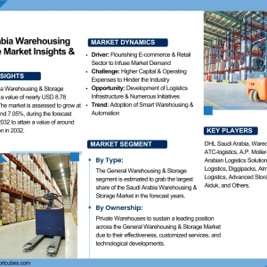 The Report Cube which is one of the leading market research company in UAE expects the Saudi Arabia Warehousing & Storage Market to grow at a CAGR of around 7.05% through 2032, as...